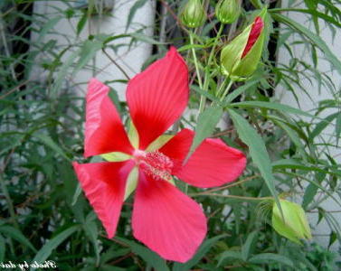 真夏の太陽にも負けまいとするような真っ赤なもみじあおい・・♪